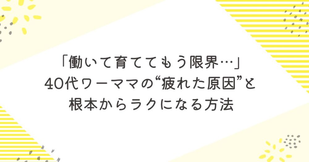 「働いて育ててもう限界…」40代ワーママの“疲れた原因”と根本からラクになる方法