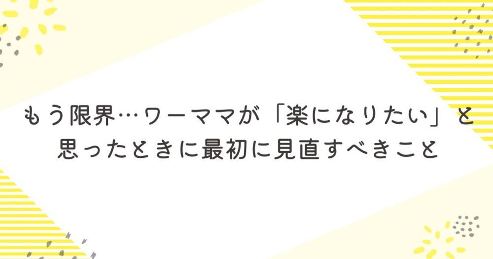 もう限界…ワーママが「楽になりたい」と思ったときに最初に見直すべきこと