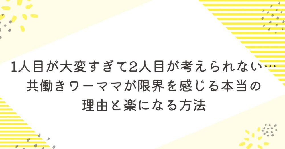 1人目が大変すぎて2人目が考えられない…共働きワーママが限界を感じる本当の理由と楽になる方法